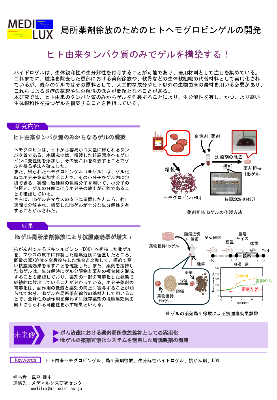 局所薬剤徐放のためのヒトヘモグロビンゲルの開発